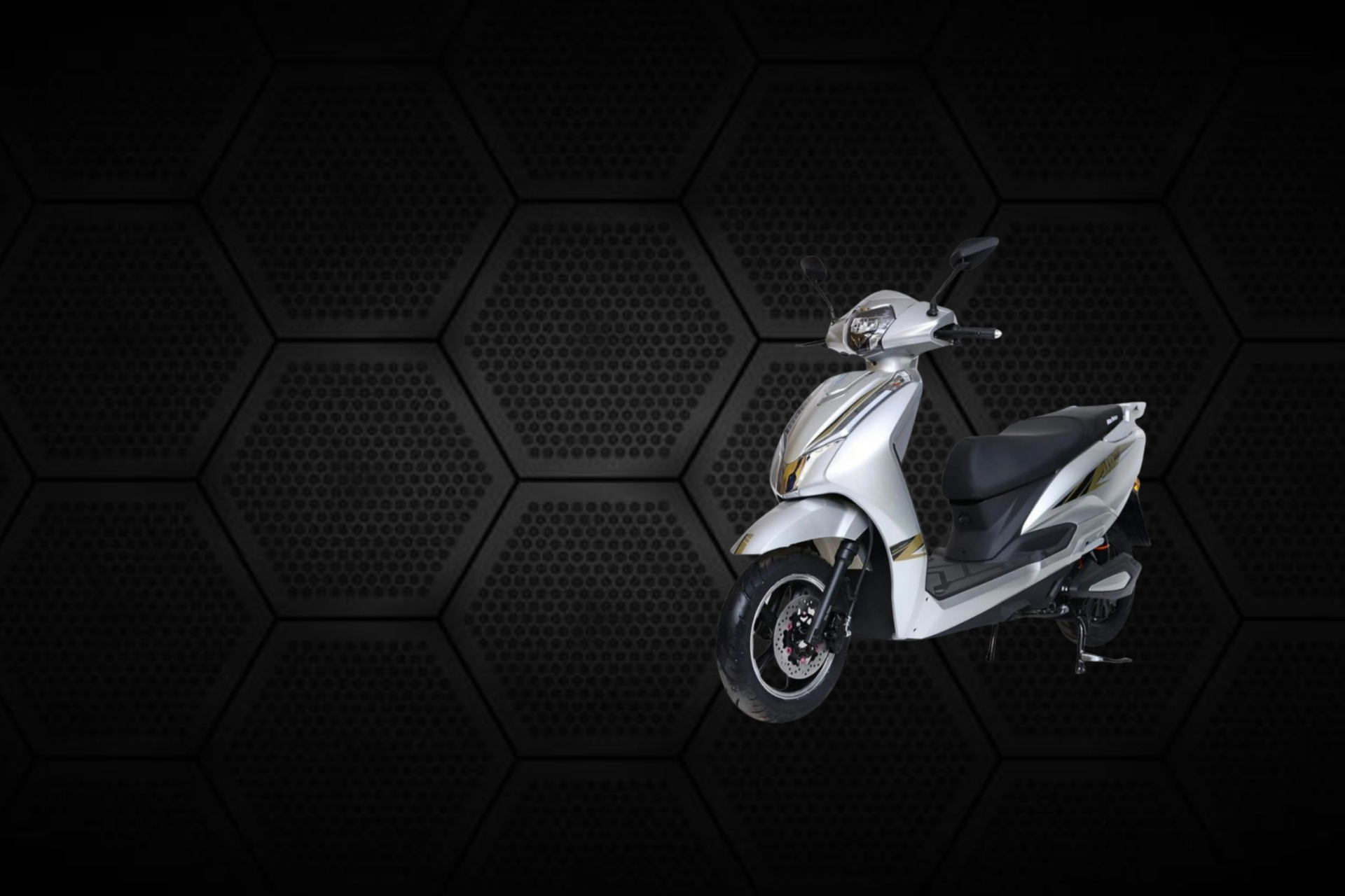 12-inch front and rear tubeless tyres on premium alloy rims with dual disc brakes.